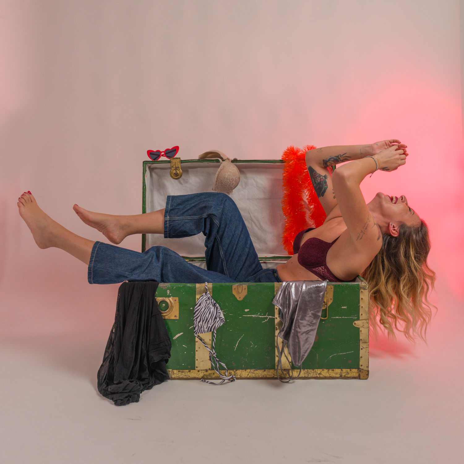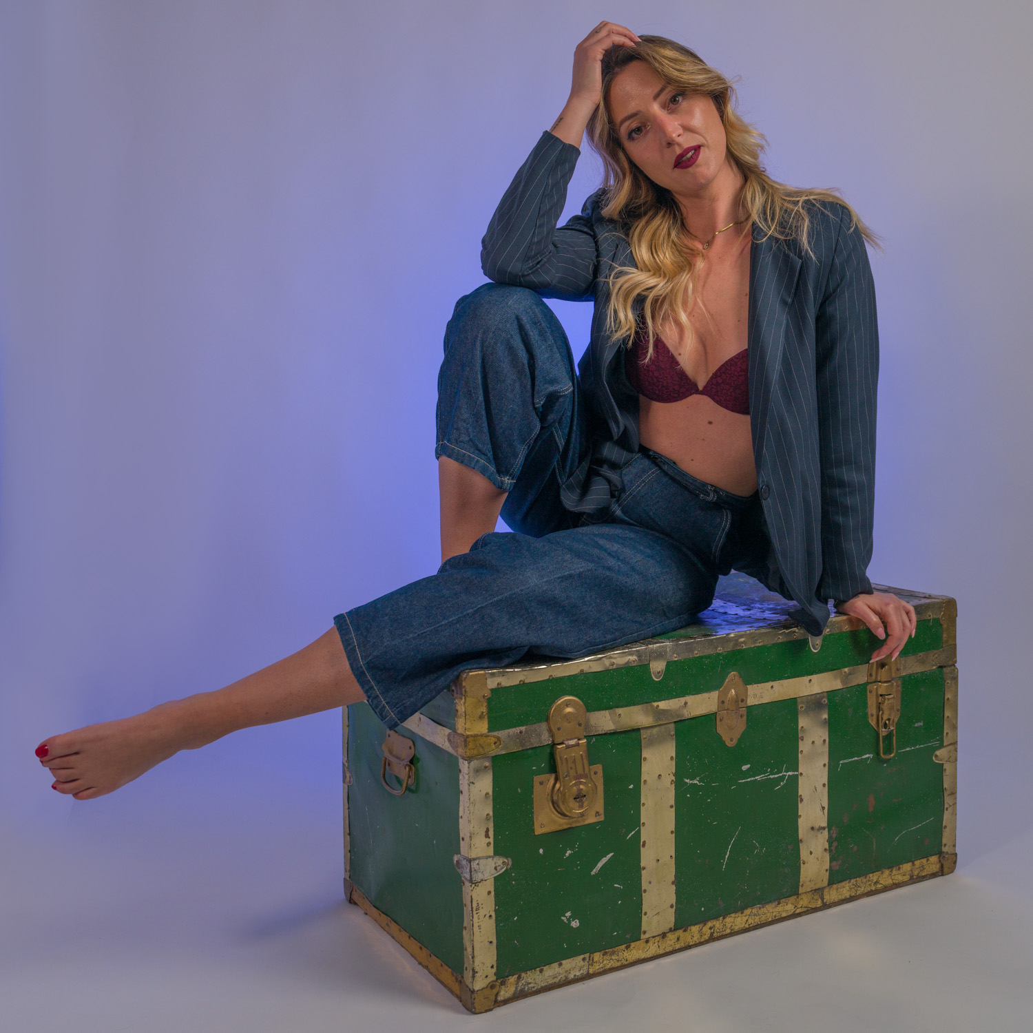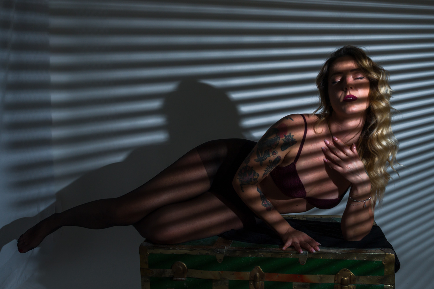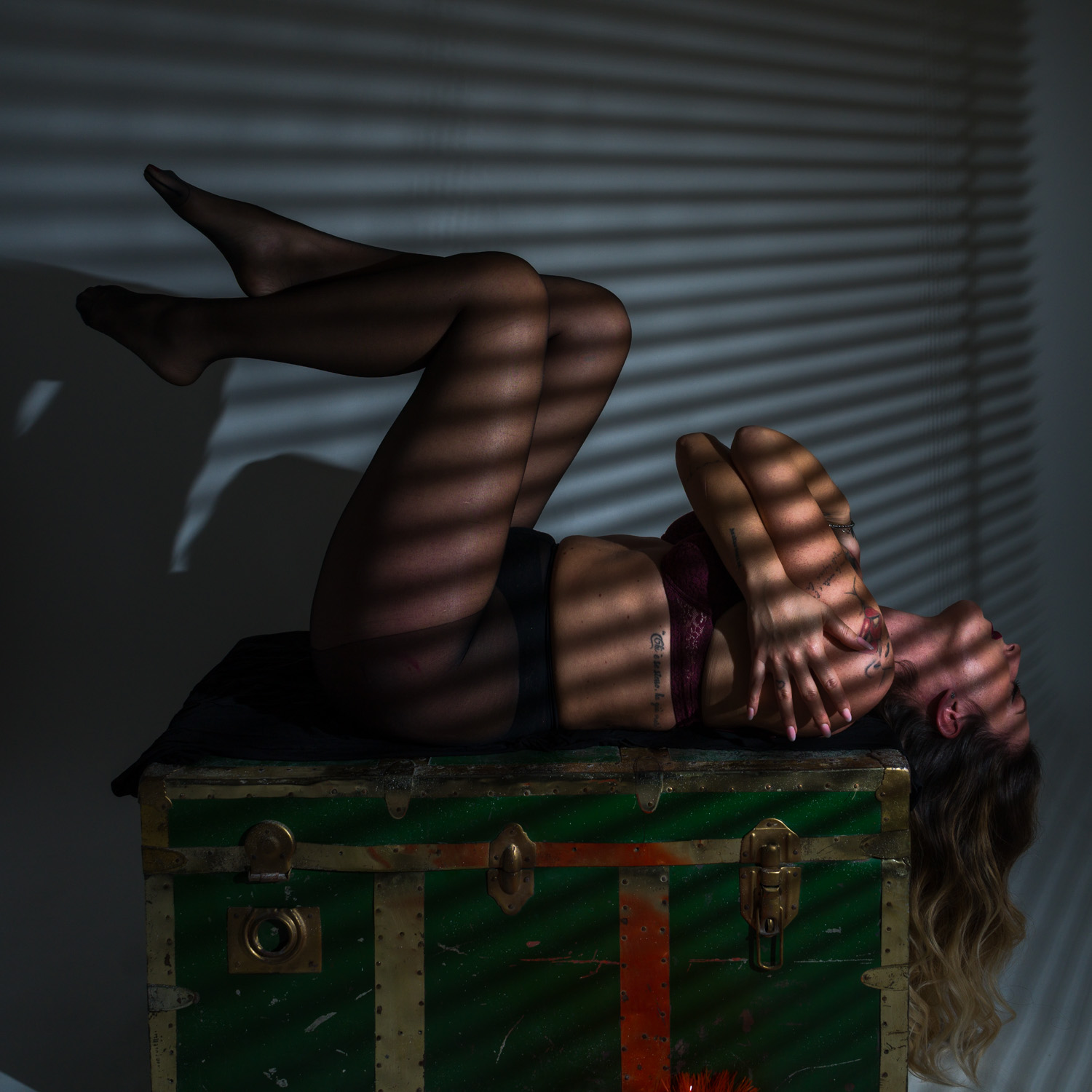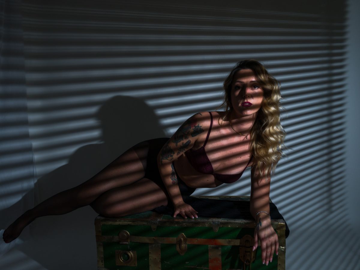Con Giorgia questa volta abbiamo sperimentato diverse tecniche di illuminazione, sfruttando anche un vecchio baule trovato per caso.