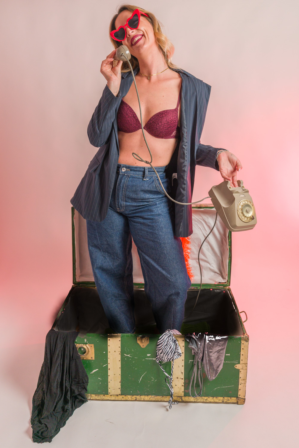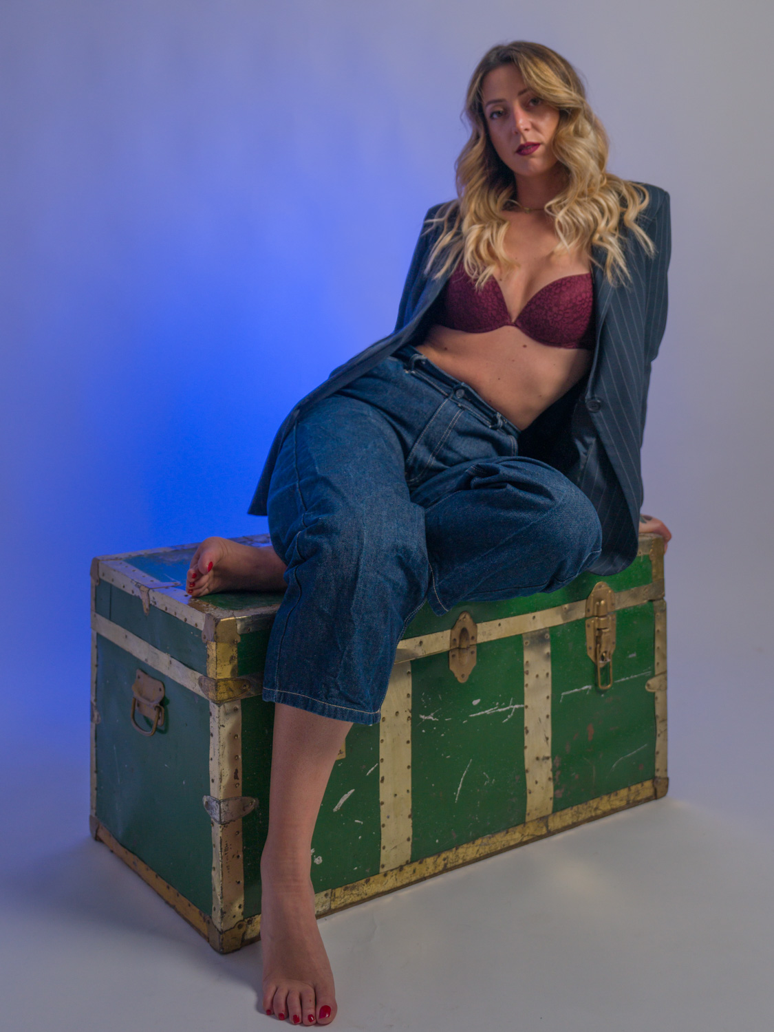 Con Giorgia questa volta abbiamo sperimentato diverse tecniche di illuminazione, sfruttando anche un vecchio baule trovato per caso.